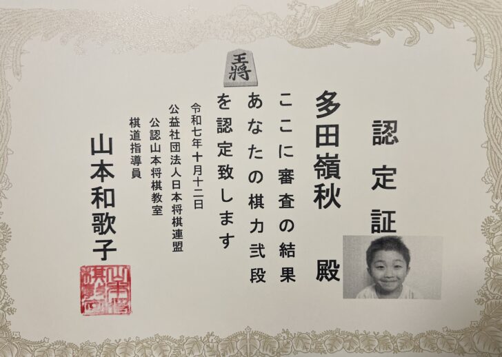 3か月前に有段者になったばかりのみね君が、あっという間に弐段に昇段しました。