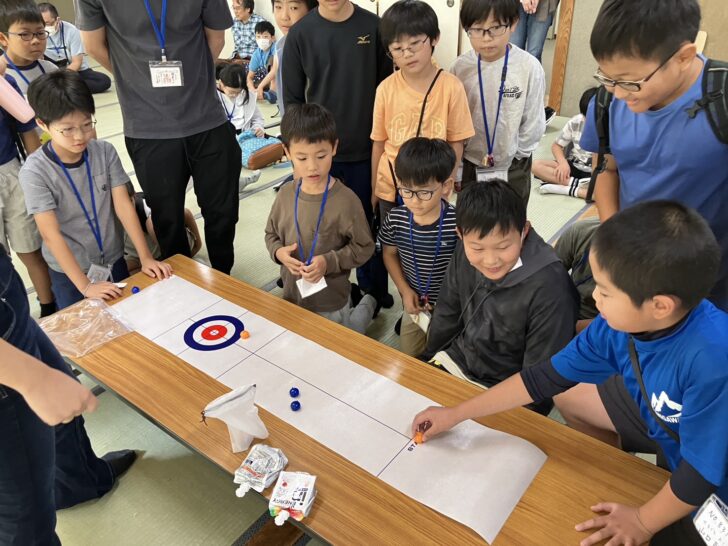 そして今週の終わりの会では、みんなでウイダーインゼリー杯のカーリングをしました。