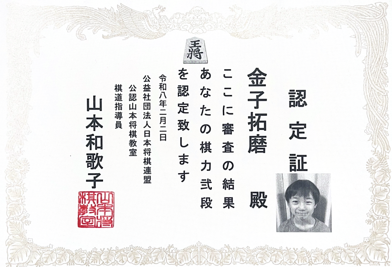 たくまくんが、初段になってから1ヵ月も経たないうちに、弐段になりました。