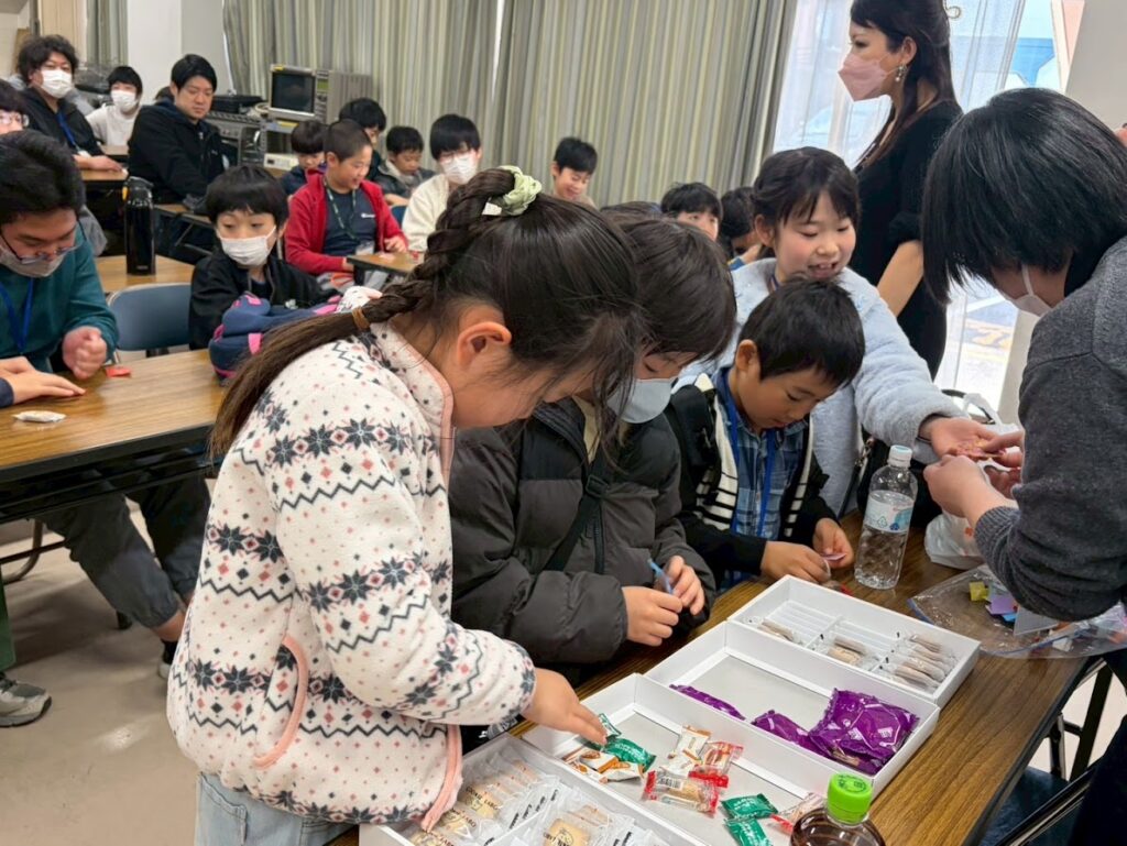 お菓子をもらってうれしそうなお顔の花が教室に咲き乱れていました。