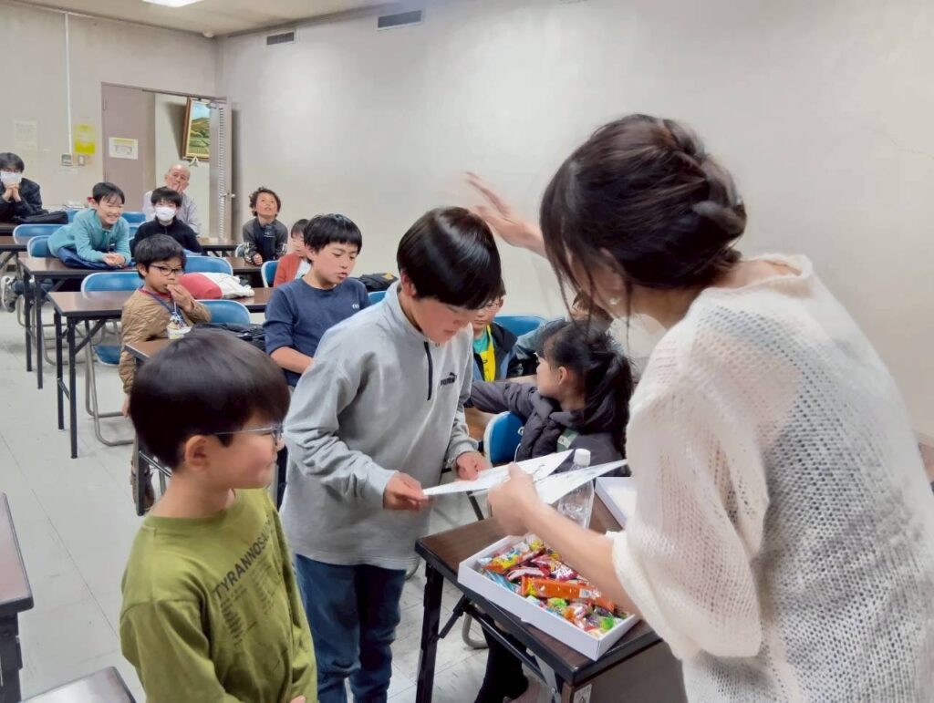 子どもたち代表にトランプを引いてもらったり、けん玉をしてもらい、誰が1番かを皆で当てるゲームをしました。