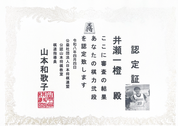 段位認定 井瀬一橙君 弐段昇段おめでとうございます