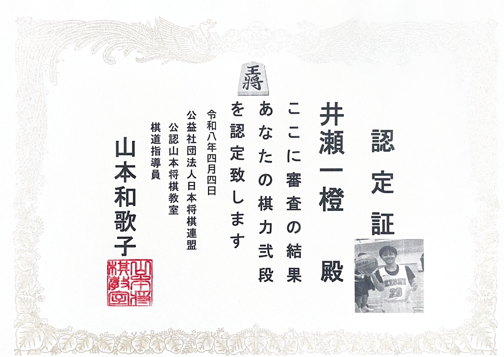 将棋をやる機会は減りましたが、部活のバスケで培った先を読む力や集中力が将棋にも活かせていると思います。