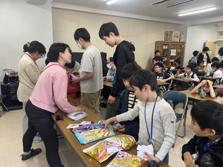 こころ先生にたくさんお菓子を買ってきてもらって、並べて開催しました。大人で開催側の私もワクワクしてしまいました(笑)。