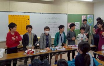 一緒にリレー将棋をしてくださって、勝ったチームに福井の飴を配りました。
